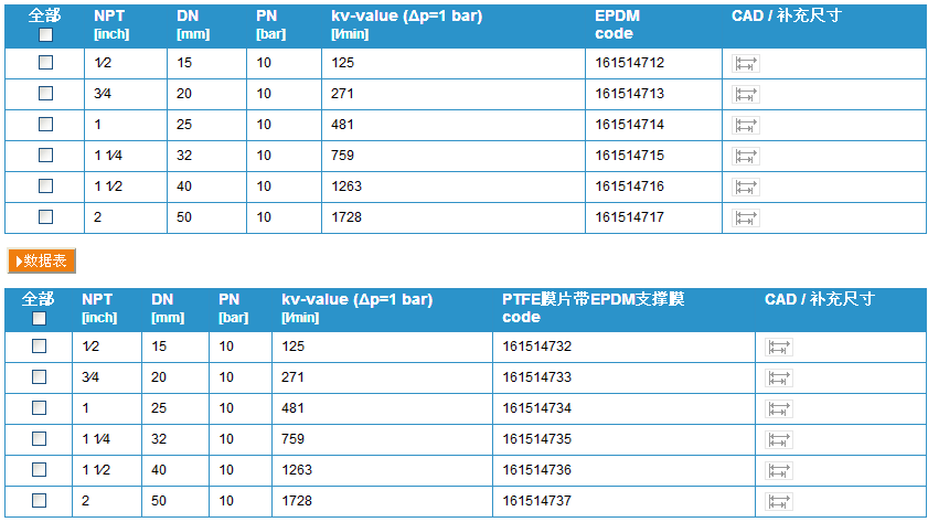 閥門個別配置(參見表格)